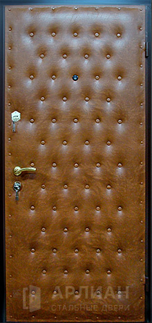 Входные двери винилискожа — это металлические конструкции, у которых стальное полотно снаружи или изнутри закрыто слоем мягкой искусственной кожи на основе ПВХ. Винилискожа представляет собой эластичную ткань с виниловым покрытием, которое наносят на волокнистую основу: материал хорошо тянется, не боится влаги и уверенно переносит перепады температур, благодаря чему его широко применяют для отделки дверей.