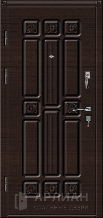 Замена цвета отделки бесплатна. За дополнительную плату дверь может комплектоваться любыми замками и фурнитурой, а также в любую дверь можно добавить зеркало, стеклопакет и кованные элементы.
